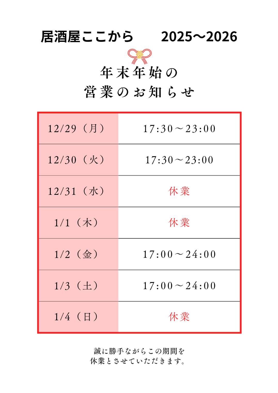いつも「居酒屋ここから」のホームページをご覧いただき、ありがとうございます。